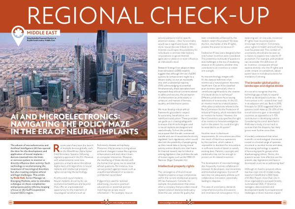 The advent of microelectronics and Artificial Intelligence ( AI ) has opened the door for the development and application of neural implants – devices inserted into the brain or nervous system to monitor or directly influence their activity . Such technology is revolutionising the treatment of neurological disorders but also creating complex ethical and legal challenges . This article by Nada Ihab , Senior Manager at Emerging Markets , aims to stimulate a dialogue on these complexities and propose policy reforms , keeping a focus on the Gulf Cooperation Council ( GCC ) region .