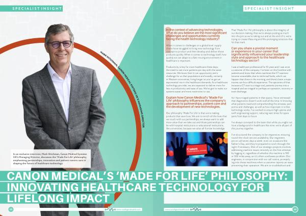 In an exclusive interview , Mark Hitchman , Canon Medical Systems UK ’ s Managing Director , discusses the ‘ Made For Life ’ philosophy , emphasising partnerships , innovation and patient-centric care in shaping the future of healthcare technology .