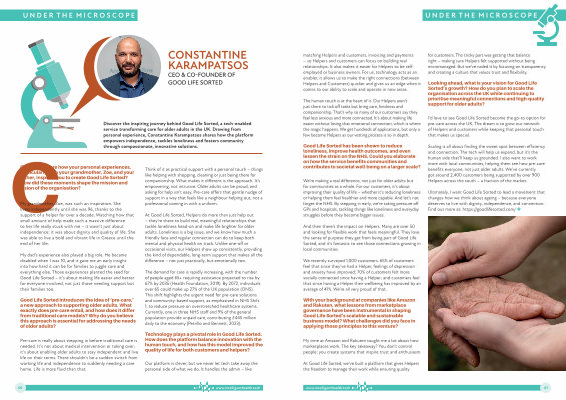 Discover the inspiring journey behind Good Life Sorted , a tech-enabled service transforming care for older adults in the UK . Drawing from personal experience , Constantine Karampatsos shares how the platform empowers independence , tackles loneliness and fosters community through compassionate , innovative solutions .