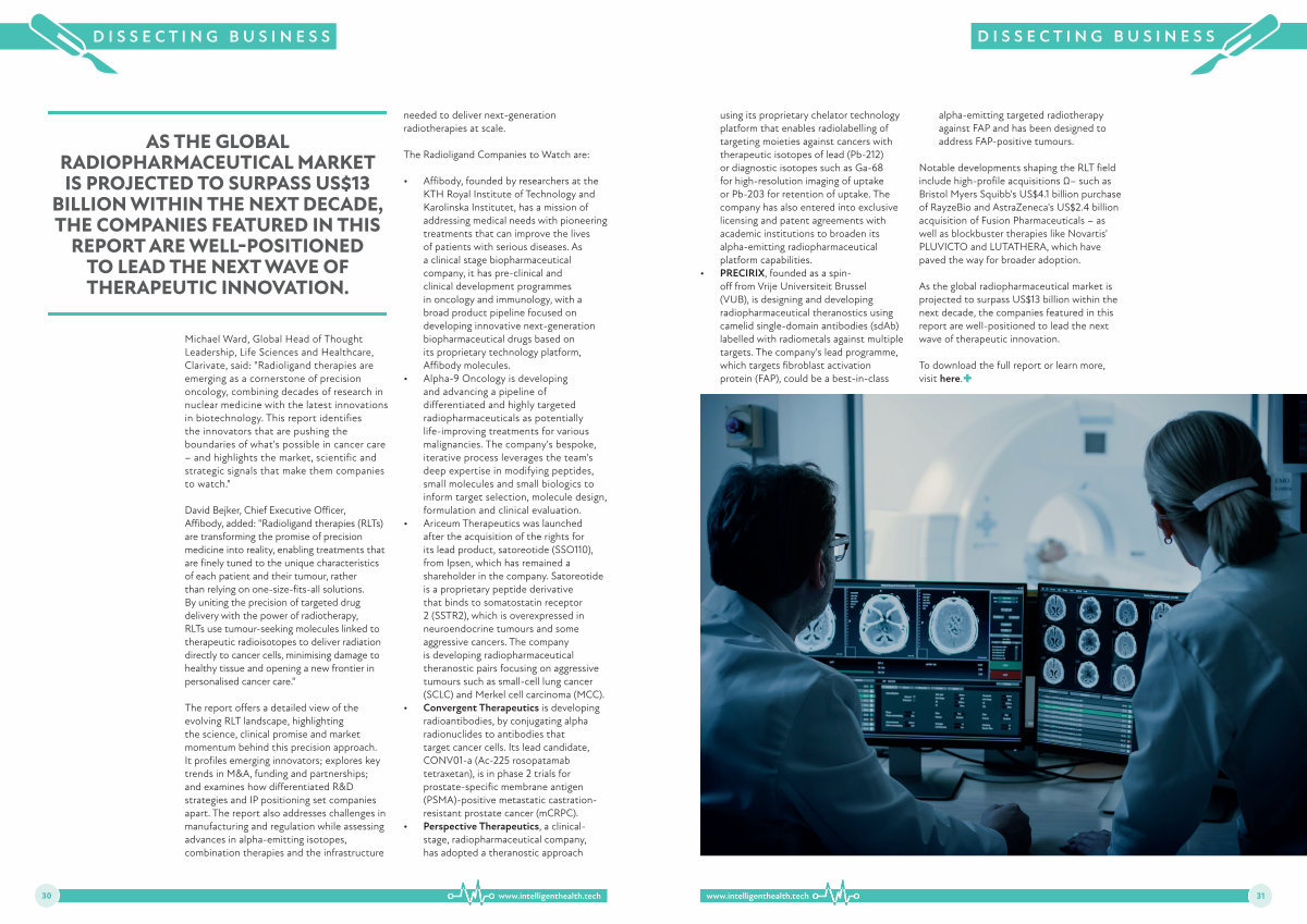 Michael Ward, Global Head of Thought Leadership, Life Sciences and Healthcare, Clarivate, said: " Radioligand therapies are emerging as a cornerstone of precision oncology, combining decades of research in nuclear medicine with the latest innovations in biotechnology. This report identifies the innovators that are pushing the boundaries of what ' s possible in cancer care – and highlights the market, scientific and strategic signals that make them companies to watch."