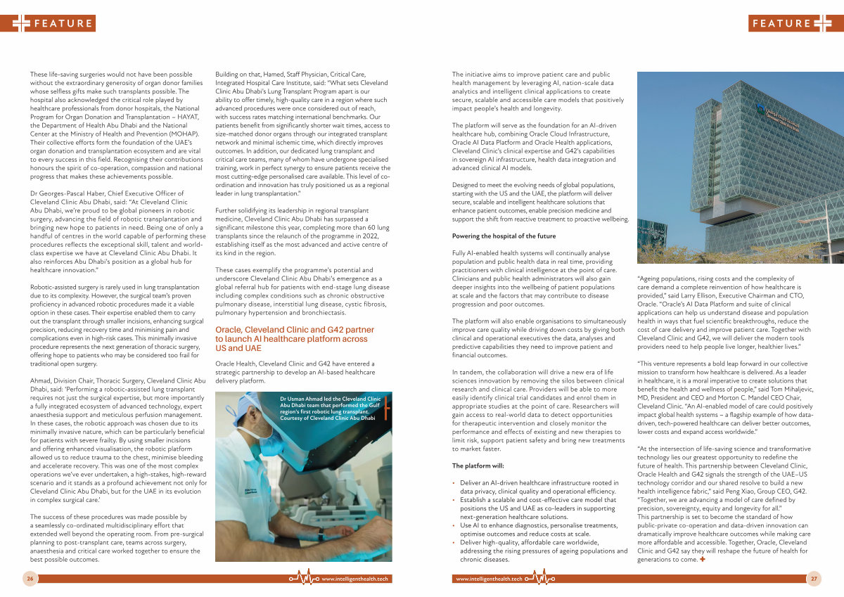 These cases exemplify the programme’ s potential and underscore Cleveland Clinic Abu Dhabi’ s emergence as a global referral hub for patients with end-stage lung disease including complex conditions such as chronic obstructive pulmonary disease, interstitial lung disease, cystic fibrosis, pulmonary hypertension and bronchiectasis.
