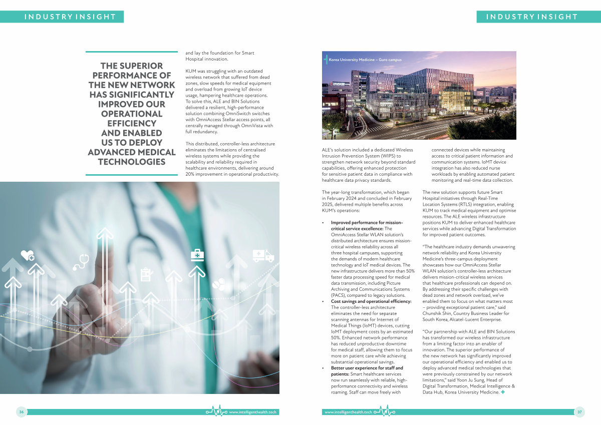 “ Our partnership with ALE and BIN Solutions has transformed our wireless infrastructure from a limiting factor into an enabler of innovation. The superior performance of the new network has significantly improved our operational efficiency and enabled us to deploy advanced medical technologies that were previously constrained by our network limitations,” said Yoon Ju Sung, Head of Digital Transformation, Medical Intelligence & Data Hub, Korea University Medicine. �